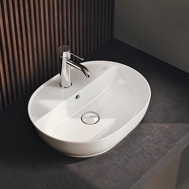 Die GROHE Essence Keramiken zeichnen sich durch extrem schlanke Kanten und weiche, organische Konturen aus. Ob als runde oder ovale Aufsatzschale, mit oder ohne Hahnlochbank – die Waschtische fügen sich nahtlos in unterschiedliche Badkonzepte ein. Auch das neue Wand-WC überzeugt durch seine klare Formensprache und sorgt für ein durchgängig stimmiges Gesamtbild.