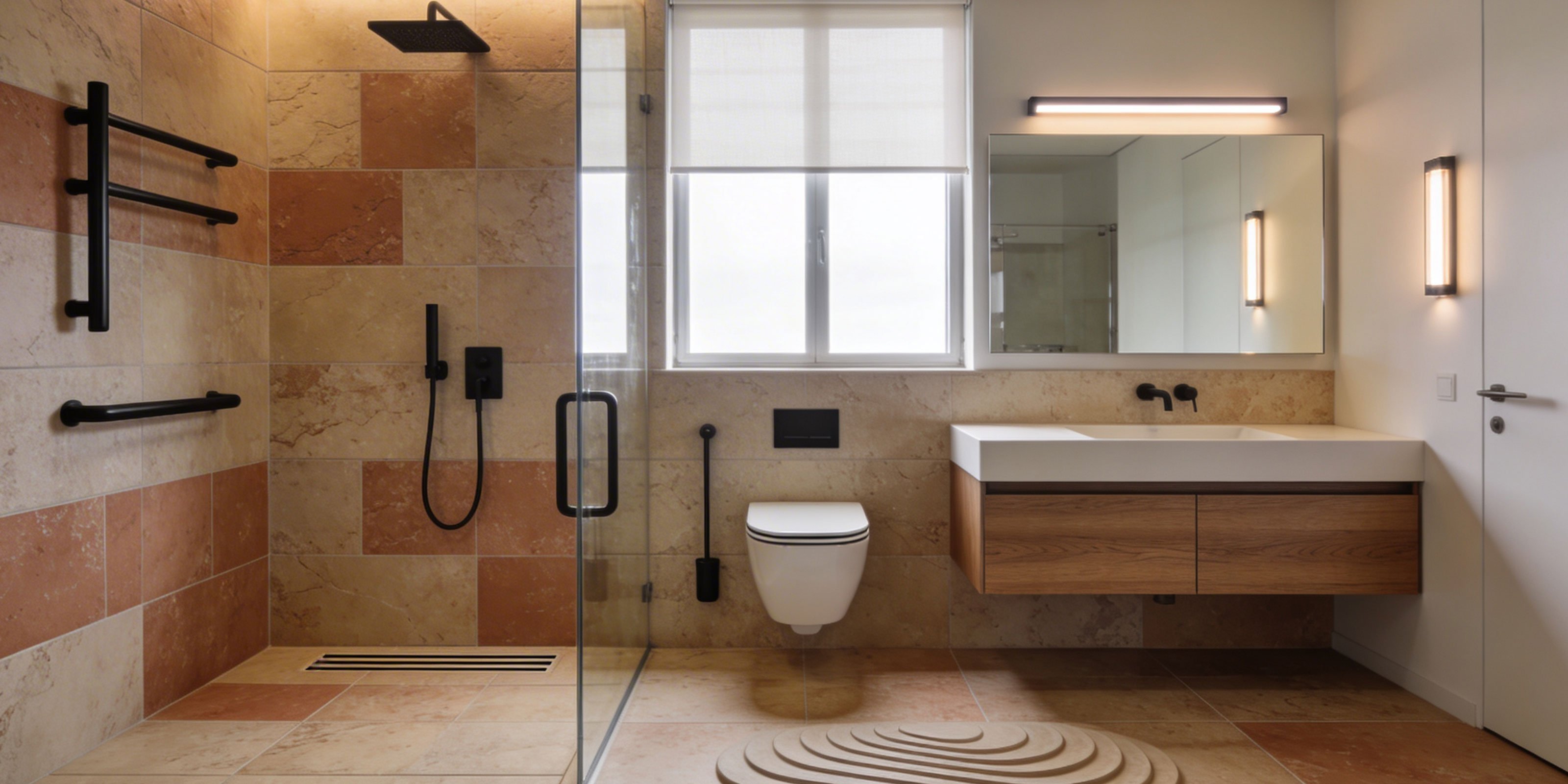 Erfahren Sie, wie ein barrierearmes Bad mit bodengleicher Dusche, rutschhemmenden Fliesen und eleganten Haltegriffen sicher, komfortabel und dennoch wie ein Designbad wirkt.